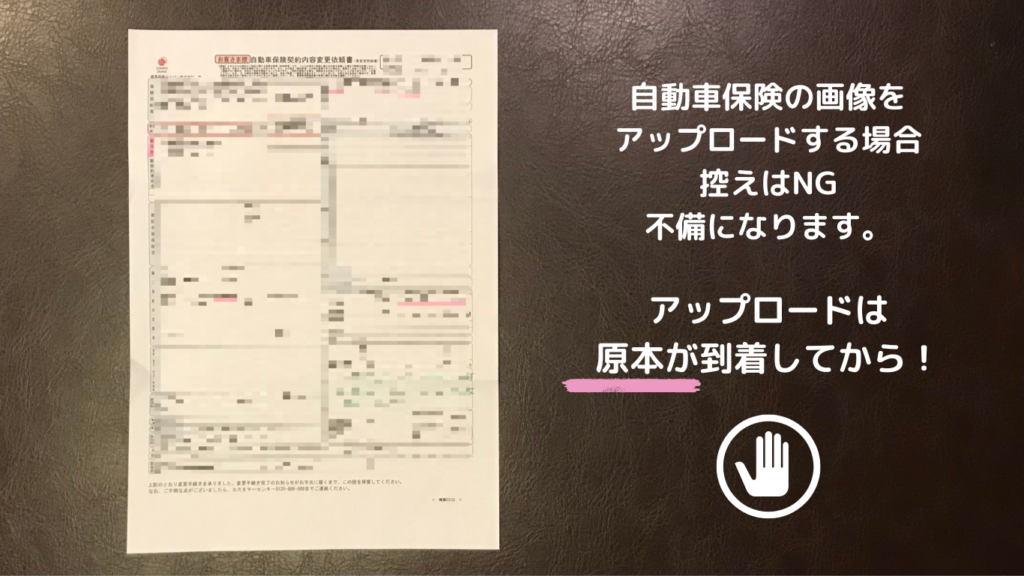 理由は、ウーバーイーツに任意保険または自動車共済証書の提出が必要で、保険の変更手続きが完了したとしても、それらの書類の原本が手元に到着していないと、書類画像のアップロードが出来ないからです。